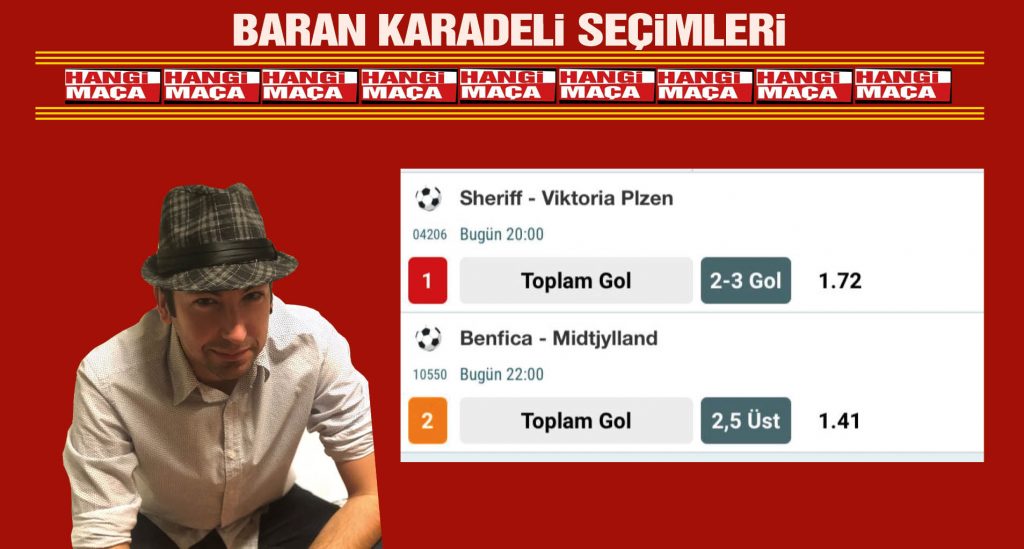 Hangi Maça Banko yorumcusu Baran Karadeli bugün bültende yer alan Şampiyonlar Ligi ön eleme turu maçlarındaki iddaa tahminleriniyaptı. Sheriff – V. Plzen maçında TGS 2-3 gol tercihini ön planda tutan Karadeli, Benfica Midtjylland maçında 2.5 üst tercihini öneriyor.